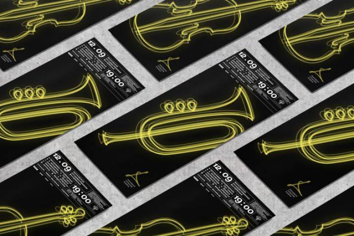 В основе знака дирижёрская сетка на размер 3/4. Дирижёр как будто рисует в воздухе своей палочкой, образуя светящийся узор. Неоновые линии, напоминающие ночные фотографии с длинной выдержкой, являются стилеобразующим элементом всей айдентики.