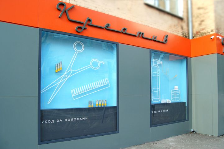 Дизайн входной группы для салона парикмахерских принадлежностей "Креатив"