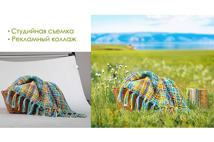 - студийная съемка в студии или в световом коробе (для мелких товаров)