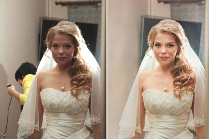 Очищен фон, осветлено и отретушировано лицо, поправлена причёска