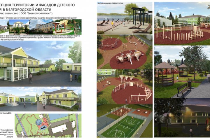 Концепция территории и реновации фасадов детского оздоровительного лагеря в Белгородской области.