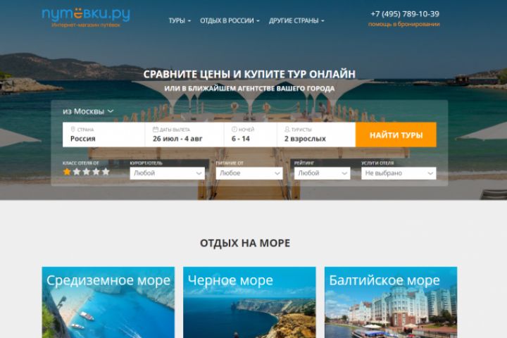 Удобный поиск путёвок. Разработка дизайна и функционала сайта. Поиск путёвок для соответствующего региона.