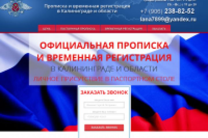 Разработка лэндинга для оформления прописки или временной регистрации. Слайдер, отзывы, формы захвата и заказа.