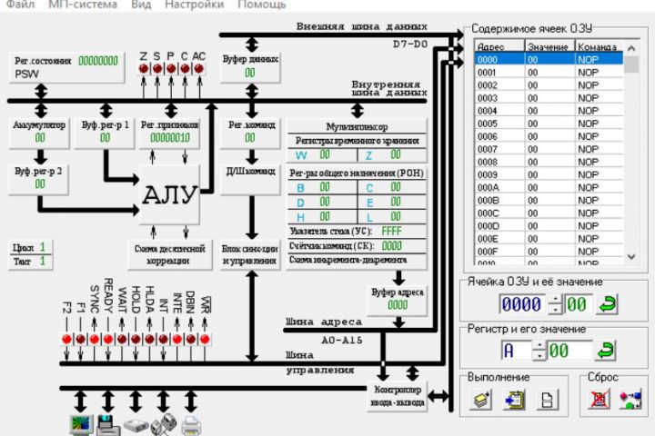 Лабораторная работа по составлению циклических программ на ассемблере для микропроцессорной системы на базе КР580ВМ80 (Intel 8088 :) ).