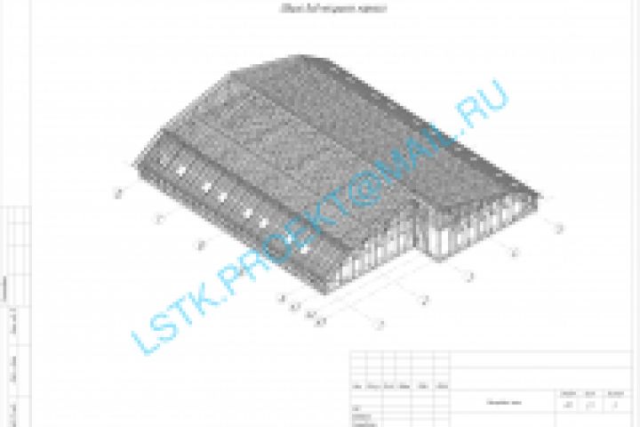 Площадь - 990 кв. м Этажность - 1,5 эт. Вес металлокаркаса (ЛСТК/чёрный Ме) - 44,2 т. Стоимость проектирования - 225 тыс. руб.
