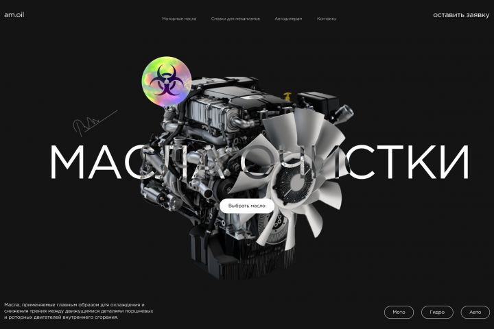 Это моя вторая работа, созданная в рамках обучения yudaev.school. Она представляет из себя главный экран сайта, который продаёт моторные масла, масла очистки и т.д.