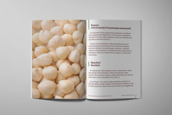 Разработка дизайна брошюры для орехового бренда HuzelNut1997.
