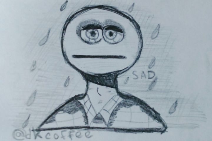 Концепт-арт, эскиз грустно смайлика, персонажа из моей невыпущенной веб-новеллы