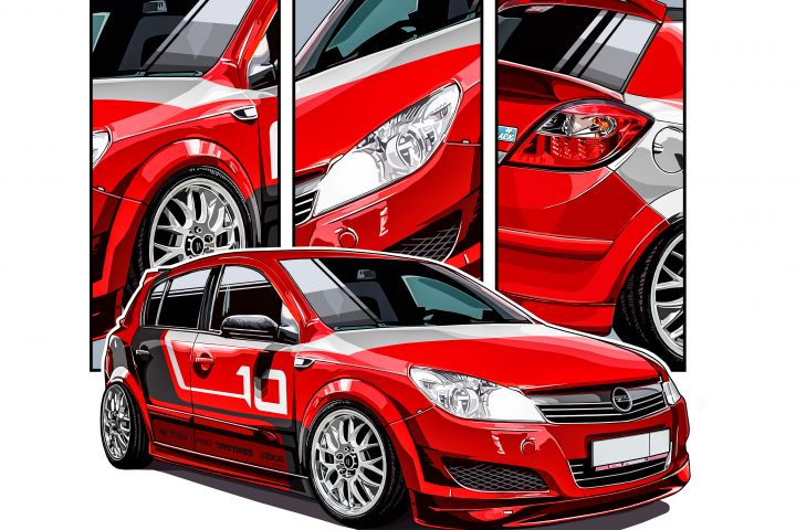 Иллюстрация машины в стилизованном стиле. Выполнена с помощью графического планшета в фотошопе.