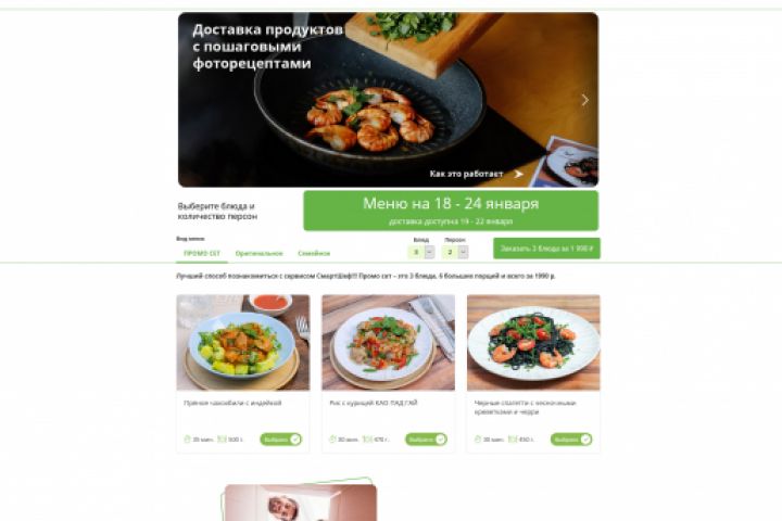 Дизайн сайта для сервиса по доставке продуктов с рецептами
