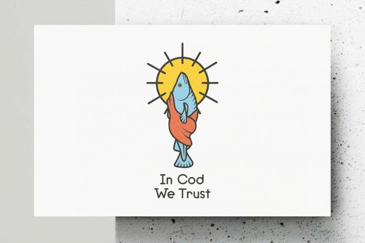 Идея логотипа для фургона для продажи еды "In Cod We Trust".