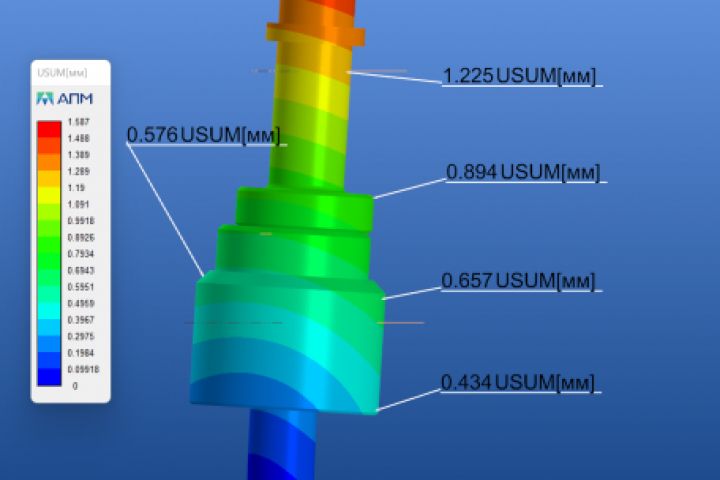 -В программе APM FEM выполнил виртуальное нагружение детали 24тс. -Подобрал оптимальную конфигурацию изделия