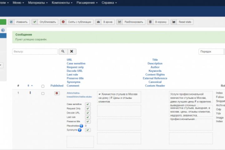 Заполнение мета-данных категорий сайта https://gorodhim.ru/. Сайт на Joomla.