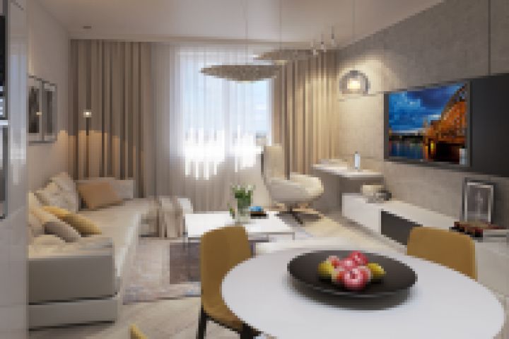 Дизайн гостиной-кухни минимализм .