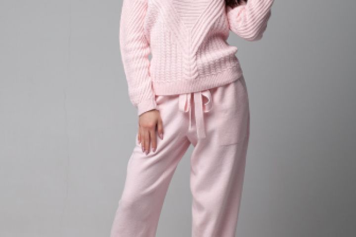 Разработан по методу fully fashion в программе Stoll M1plus и связан на машинах Stoll: джемпер - Stoll 530HP 3,5.2 и брюки с цельновывязанными карманами в наклонным входом - Stoll 530HP 6.2.