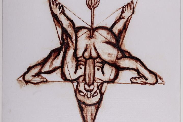 Холст на картоне, кровь