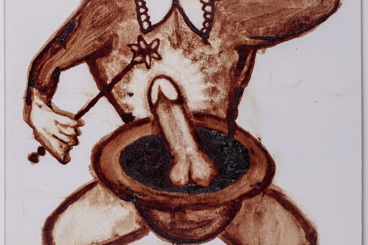 Холст на картоне, кровь