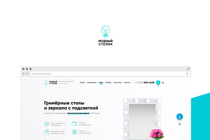 Дизайн Landing Page "Модный столик" – Производство гримёрных столов и зеркал Для заказа пишите на почту: goodidea.one@gmail.com