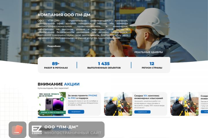 Работы которые мы проделали: Дизайн, Верстка, Выложили на хостинг, Подключили Яндекс директ, веб мастер и гугл серч консоль, Базовое семантическое ядро.