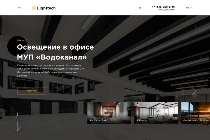 Дизайн сайта с портфолио работ для компании, занимающейся проектированием и установкой освещения в квартиры, коммерческие помещения и другие объекты.