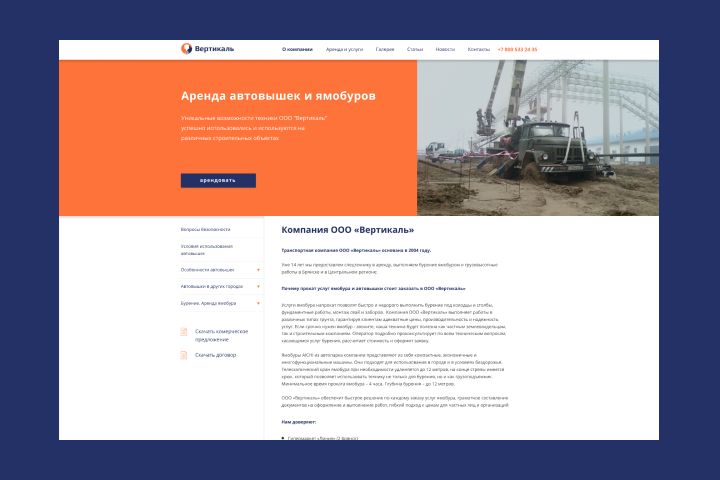 Задача: Создать сайт для компании занимающейся арендой спец. техники