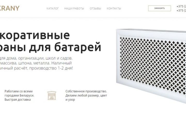 Многостраничный сайт для бренда декоративных экранов для батарей Ekrany. На сайте есть каталог товаров со службой заботы о клиентах, также имеется отдельная страница с отзывами и благодарственными письмами. Сайт выполнен в нейтральных бежевых и белых тонах для лучшего восприятия контента
