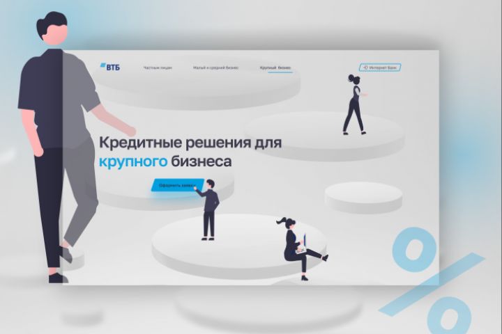 Спроектировать посадочную страницу для банка ВТБ, которая позволит менеджеру крупной компании подать заявку