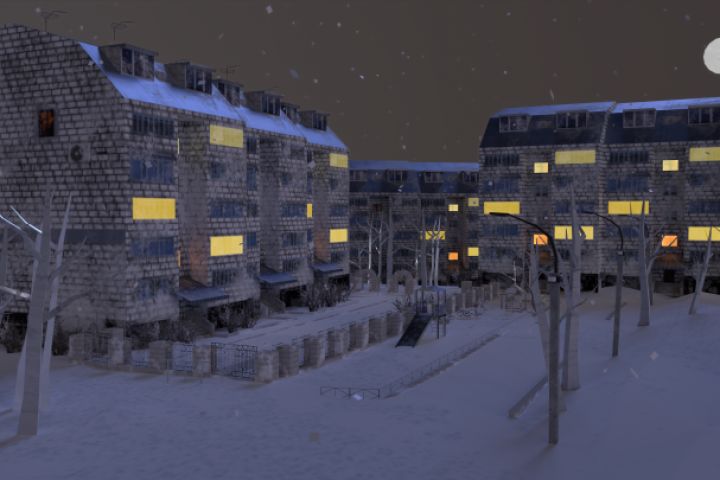 Создание 3D зимнего двора в стиле PS1 Low Poly