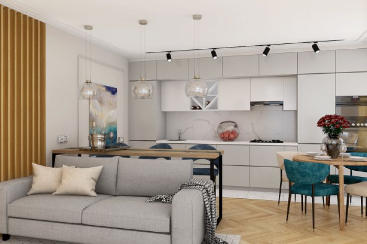 Двухэтажная квартира в курортном районе Калининграда на берегу моря. Квартира выполнена в современной классике, 70 кв.м.