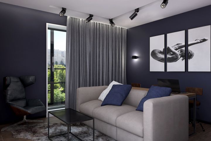 Квартира-студия для молодого холостяка с элементами Лофт в современном стиле, 40 кв. метров.