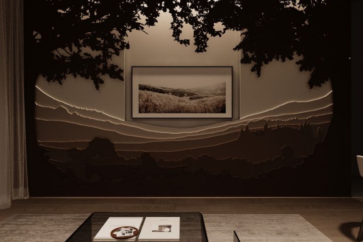 Все оттенки подобраны таким образом, чтобы панель максимально гармонично вписывалась в интерьер. А все ее слои спроектированы так, что между ними нет щелей, куда бы могла попасть пыль. Передняя панель легко открывается для доступа к внутреннему освещению панели.