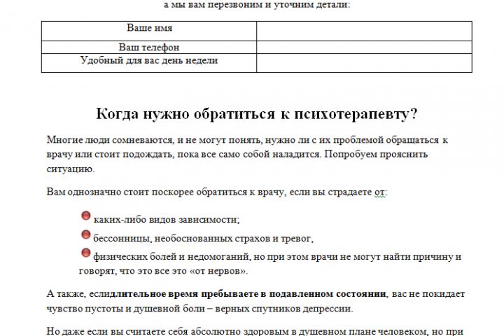 Этот комплексный продающий текст написан в рамках моего обучения в школе копирайтеров. В нем на одной странице проработаны все шаги продажи: втягивание читателей в чтение, предложение услуг, работа с возражениями, продажа цены и т. д. Текст может быть использован на сайте- одностраничнике или же разбит на несколько страниц для многостраничного сайта (более типичное решение для услуг такого рода).