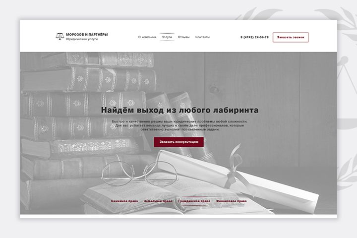 Строгий, лаконичный и лёгкий дизайн сайта для юридической фирмы