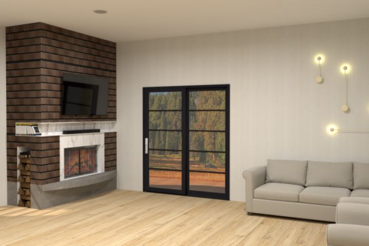 Интерьер гостиной индивидуального жилого дома, находящегося недалеко от лесного массива