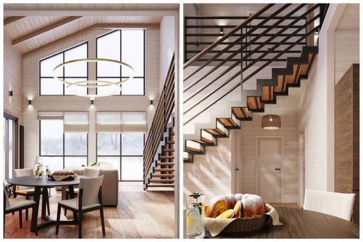Проект частного дома из деревянного бруса в стиле Japandi с элементами Neoclassic. Концепция единения человека с природой.