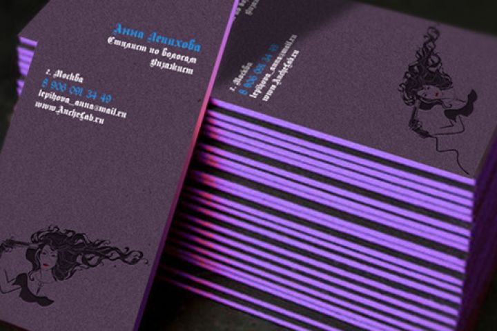 Легкий креатив при разработке дизайна визитной карточки для стилиста по волосам, визажиста Анны Лепиховой, г. Москва