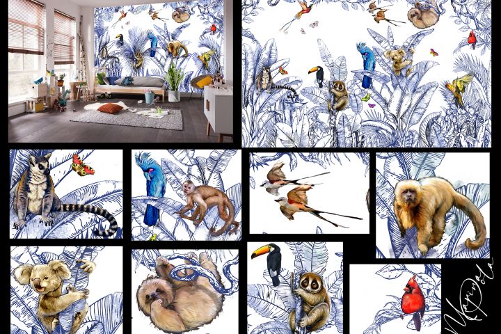 Задание было очень подробное, стиль, графика, перечень животных, которых нужно нарисовать. Нарисовано с помощью графического планшета.