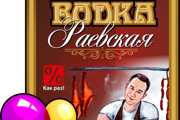 Праздничная этикетка для водки с портретом-шаржем юбиляра.