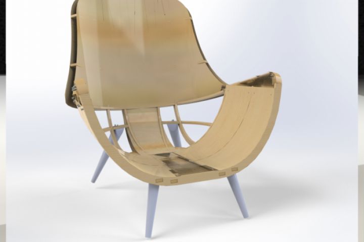 Каркас кресла нарезается из фанеры лазером и собирается в шип-паз.