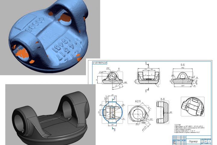 На основе 3D-скана производится обработка облака точек, с последующим построением 3D-модели и выпуском чертежей.