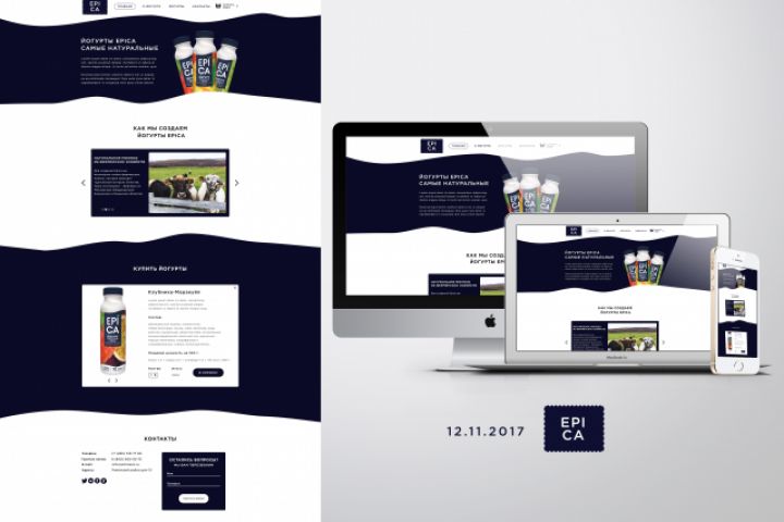 Данный дизайн делался для портфолио.Была поставлена задача сделать дизайн сайта по тематике йогурта EPICA. Экспериментировал с большими отступами. Дизайн: Flat-стилистика