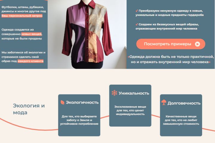 Разработка дизайна сайта для интернет-магазина по продаже кастомизированной одежды согласно ТЗ