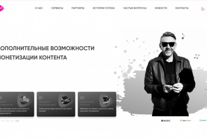 Нами полностью была переработана визуальная и техническая часть сайта с учетом того что основные пользователи — это креативные люди, музыканты, музыкальные лейблы, представители площадок (Apple music. Яндекс музыка, Сбер звук и др.).