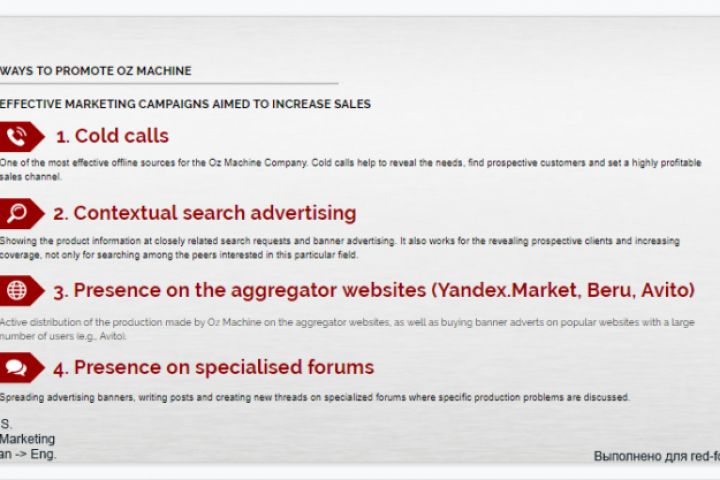 Перевод презентации делового предложения и плана по продвижению компании, изготавливающей станки.