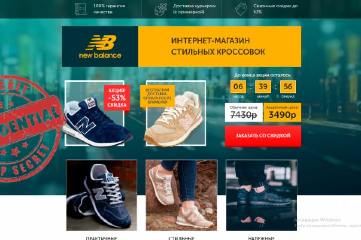 Разработка Landing Page под товар для кроссовок: