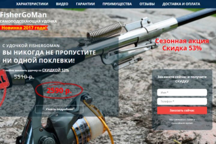 Разработка Landing Page под товар для рыбалки: