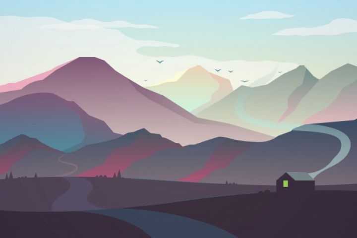 Утро в горах. Рисунок отрисован по видео-уроку. Композиция выполнена в минималистичном стиле.