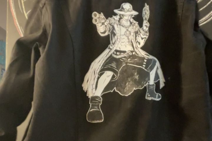 Аниме-персонаж, нарисованный вручную на джинсовке