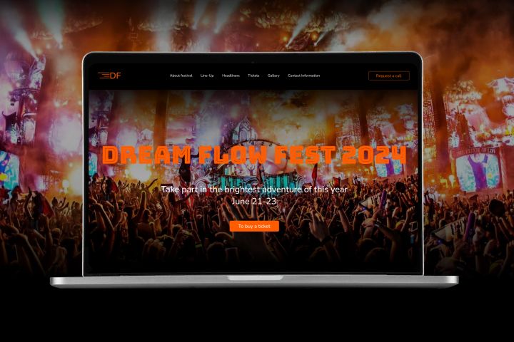 посадочная страница для музыкального фестиваля. Сделаны адаптивные версии (планшетная и мобильная) Ссылка на кейс на Behance https://www.behance.net/gallery/188982739/Music-Festival-Landing-page