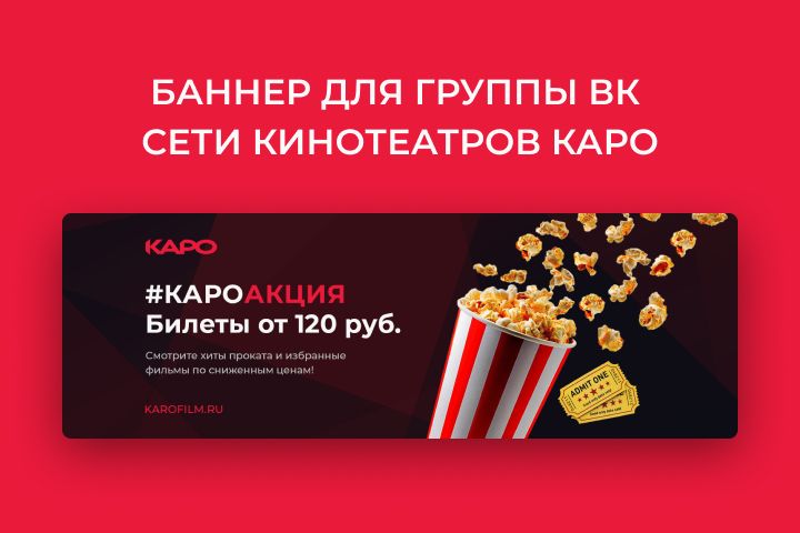 Баннер был создан в Photoshop. Был выдержан фирменный стиль сети кинотеатров КАРО.